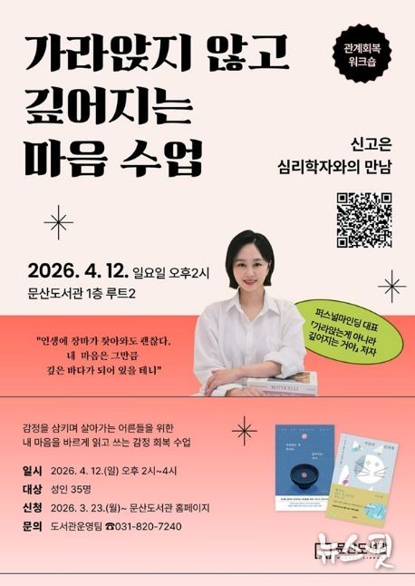 (뉴스핏 = 김호 기자) 파주시 문산도서관은 오는 4월 12일, 성인을 대상으로 한 감정 회복 강연 ‘가라앉지 않고 깊어지는 마음 수업’을 운영한다.