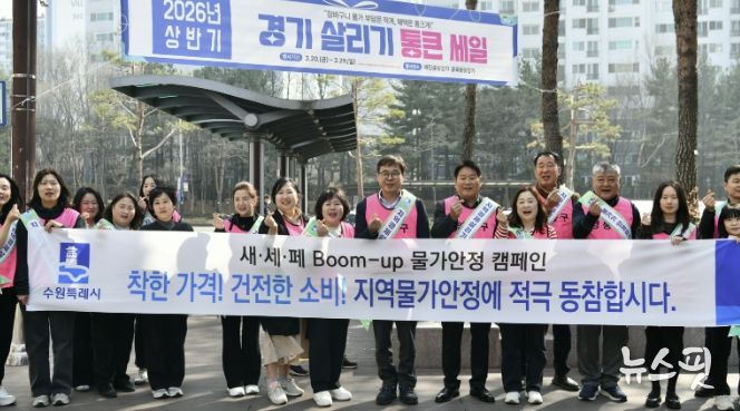 (뉴스핏 = 김호 기자) 수원특례시 영통구는 지난 26일 매탄중심상가 골목형상점가 일원에서 2026년 상반기 새빛세일페스타와 연계한 ‘Boom-up 물가안정 캠페인’을 실시했다.