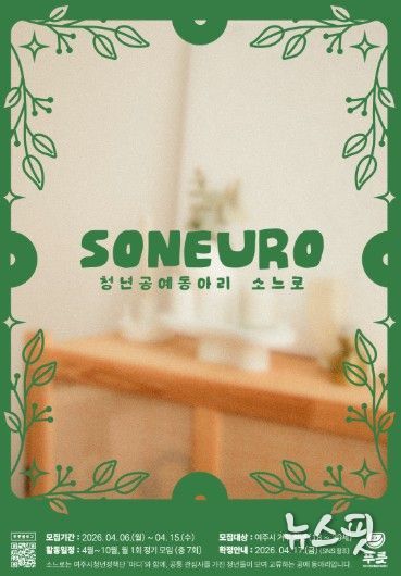 (뉴스핏 = 김수진 기자) 여주시청년활동지원센터 푸릇은 오는 4월 청년공예동아리 'soneuro(소느로)' 참여자를 모집한다고 2일 밝혔다.