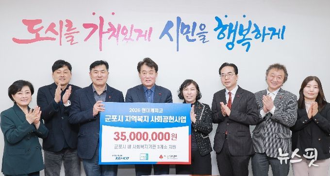 윤일노 현대케피코 전무는 “7년 동안 군포시와 함께 따뜻한 동행을 이어올 수 있어 뜻깊다”며 “앞으로도 지역사회의 어려운 이웃들에게 실질적인 도움이 되는 나눔을 지속하겠다”고 말했다.