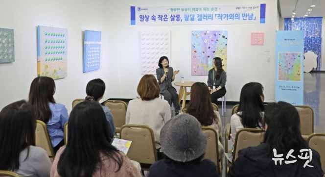 (뉴스핏 = 김수진 기자) 수원시 팔달구는 지난 4월 2일, 팔달구청 1층 팔달 갤러리에서 4월 전시 작가인 현수영 작가를 초청하여 지역 주민들과 함께 소통하는 ‘작가와의 만남’ 행사를 개최했다고 밝혔다.