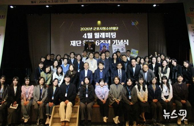 (뉴스핏 = 김수진 기자) 군포시청소년재단은 4월 3일 군포시청소년수련관 청소년어울림극장에서 4월 월례미팅을 열고, 창립 6주년을 맞아 미래도약 의지를 다지는 자리를 마련했다. 이날 행사에는 군포시청소년재단 임직원, 화용선차예문화연구소 등 80여 명이 참석했다.