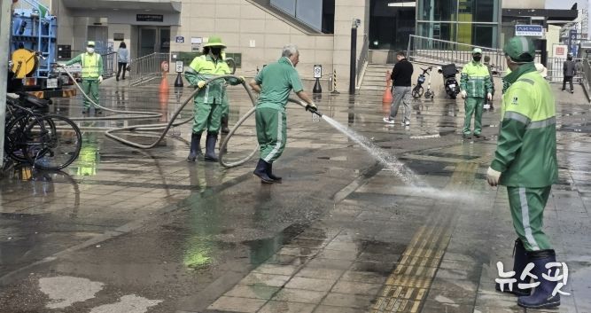 (뉴스핏 = 김호 기자) 수원시 팔달구은 지난 3일 수원역 광장 및 수원역 환승센터 일원에서 합동 환경정비를 실시했다.