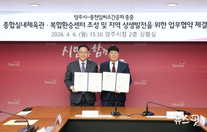 (뉴스핏 = 김호 기자) 양주시가 6일 시청 시장실에서 풍천임씨소간공파 종중과 ‘종합실내체육관·복합환승센터 조성 및 지역 상생발전을 위한 업무협약(MOU)’을 체결했다.
