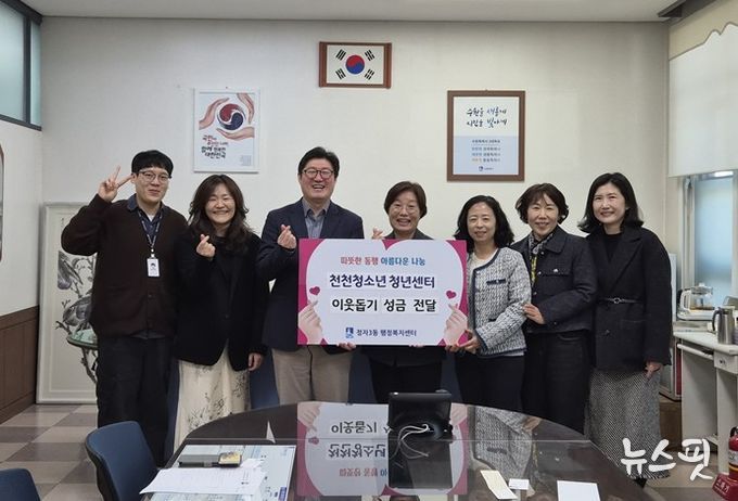 기탁식에 참석한 정자3동행정복지센터 관계자는 “지역 사회를 위해 따뜻한 마음을 모아준 천천청소년청년센터와 프로젝트에 참여한 모든 청소년, 청년들에게 깊은 감사를 드리고, 기탁해 주신 소중한 성금은 도움이 꼭 필요한 이웃들에게 잘 전달하겠다”고 화답했다.