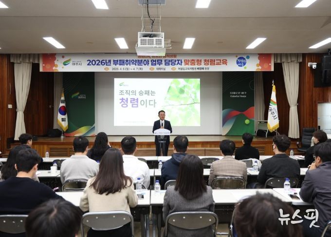 (뉴스핏 = 김호 기자) 여주시는 4월 6일부터 7일까지 이틀간 부패취약분야(계약, 재·세정, 인·허가, 보조금 업무 등) 담당자를 대상으로 맞춤형 청렴교육을 실시했다. 교육은 총 4회(오전·오후)로 나누어 소규모로 진행됐으며, 대상자 276명 중 260명이 참석해 높은 참여율 속에 집중도 있게 운영됐다.