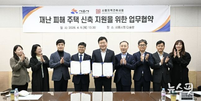 (뉴스핏 = 김수진 기자) 시흥시는 각종 사회재난 및 자연재난으로 피해를 본 주민의 신속한 주거 안정을 지원하기 위해 시흥지역 건축사회와 ‘재난 피해주택 신축 지원을 위한 업무협약’을 지난 9일 다슬방에서 체결했다.