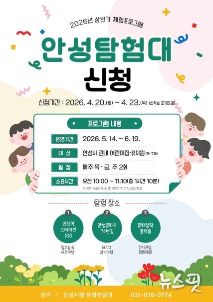 참여를 원하는 어린이집 및 유치원은 안성시청 홈페이지의 [고시/공고] 게시판을 참고해 4월 20일부터 23일까지 이메일로 신청하면 된다. 접수는 선착순으로 마감될 예정이다.