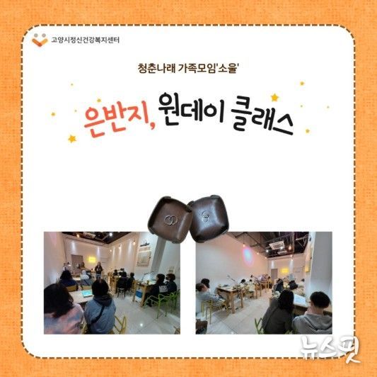 (뉴스핏 = 김수진 기자) 고양특례시 정신건강복지센터는 지난 9일 정신건강에 어려움을 겪는 청년과 그 가족 20명을 대상으로 ‘은반지 원데이 클래스’ 문화예술 체험 프로그램을 진행했다.