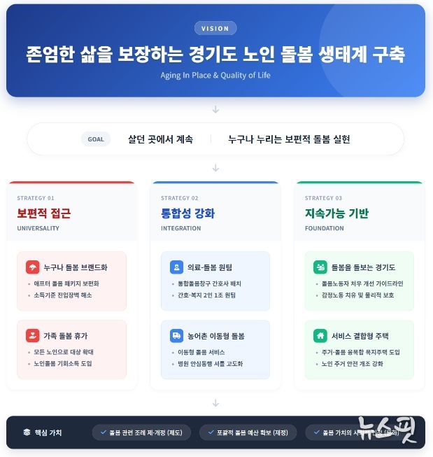 이번 연구는 경기도 노인 512명을 대상으로 한 설문조사와 돌봄 종사자 27명 심층 인터뷰를 통해 실제 생활 속 돌봄 상황을 분석했다.
