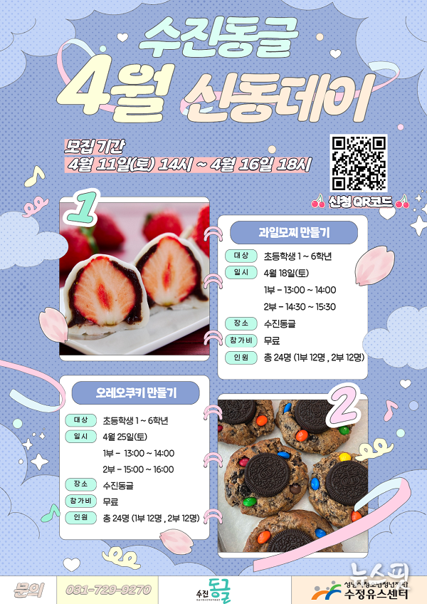 주요 내용으로는 ▲18일 과일모찌 만들기 ▲25일 오레오 쿠키 만들기 체험이 진행되며, 참여자들이 직접 만들고 체험하는 과정을 통해 성취감과 창의적 표현 경험을 높일 수 있도록 했다.