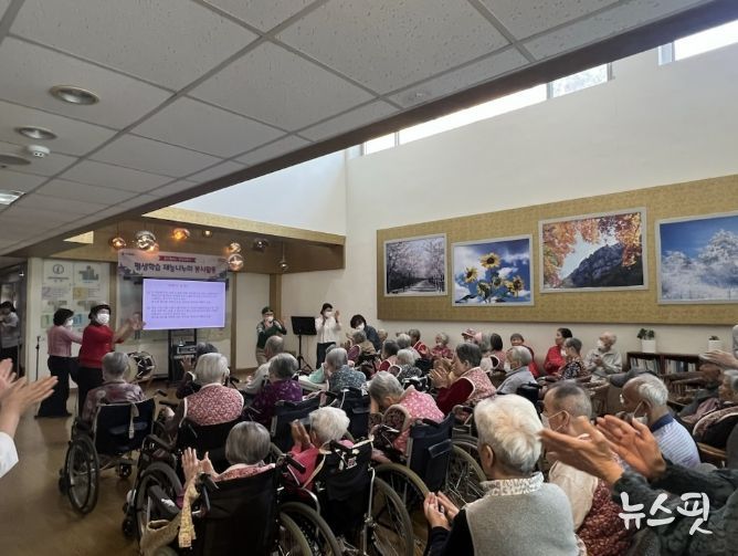 (뉴스핏 = 김수진 기자) 용인특례시는 평생학습관 재능나누미 교육 수강생들이 16일 처인구 역북동에 있는 대한간호노인요양원을 찾아 노인들을 대상으로 인지기능 향상을 위한 프로그램을 진행했다고 17일 밝혔다.