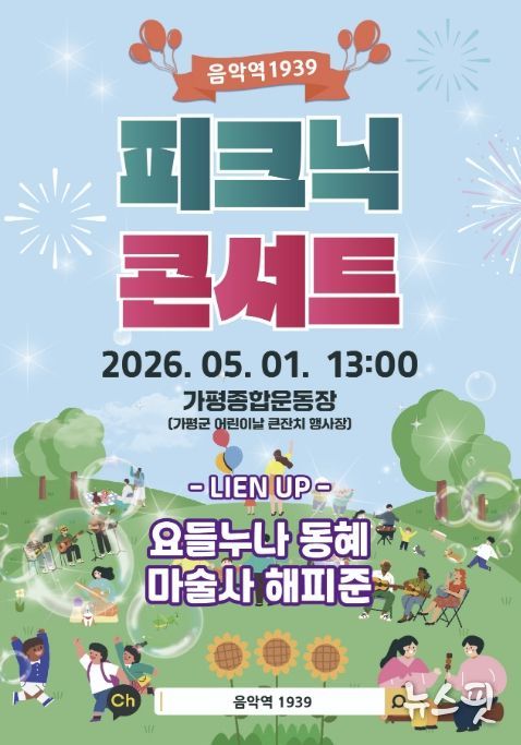 가평군은 오는 5월 1일 오후 1시 가평종합운동장에서 ‘피크닉 콘서트’를 개최한다고 밝혔다. 이번 공연은 ‘제15회 가평군 어린이날 큰잔치’의 축제 분위기를 조성하고, 주민들에게 야외 휴식 공간에서 즐기는 문화 향유 기회를 제공하기 위해 기획됐다.