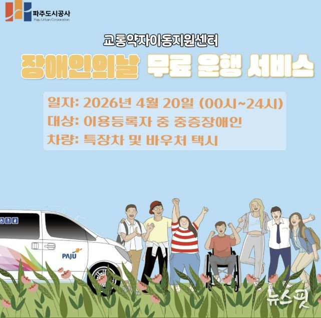 (뉴스핏 = 김호 기자) 파주도시공사 교통약자이동지원센터에서는 오는 4월 20일 장애인의 날을 맞아 교통약자를 위한 무료 운행 서비스를 실시한다.