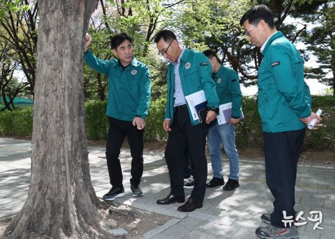 아울러 중앙분리대 화단, 인도 원형화분, 난간걸이화분 등의 식재 상황과 관내 초입에 위치한 백마주유소사거리 대형 장미꽃조형물의 관리 상태와 인근 환경도 점검했다.