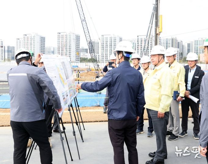 이번 점검은 공사 진행 현황과 주요 공정 추진 사항, 여름철 집중호우 등 재해 발생에 대비해 위험 요인을 사전에 확인하기 위해 추진됐다. 이날 현장에는 파주시장 및 관계 공무원들이 참석해 시공사로부터 부지 조성 및 공동주택 공사 진행 상황을 보고받고, 주요 공정 현장을 직접 확인했다.