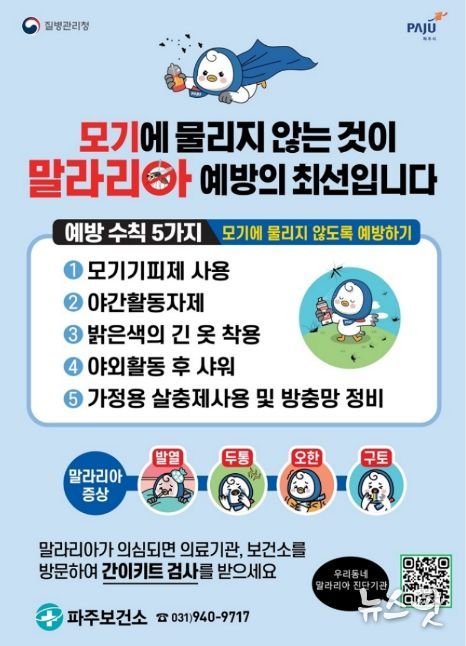 이한상 파주보건소장은 “발열이나 오한 등 감기 증상이 나타날 경우, 가까운 말라리아 진단기관이나 보건소를 방문해 신속히 검사받는 것이 중요하다”라며 “앞으로도 촘촘한 감염병 안전망을 구축해 시민의 건강과 일상을 안전하게 지켜나가겠다”라고 강조했다.