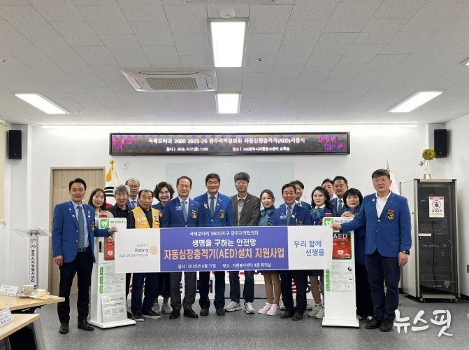 (뉴스핏 = 김호 기자) 국제로타리 3600지구 2025-26 광주지역협의회는 지난 17일 광주시자원봉사센터 4층 교육장에서 자동심장충격기 기증식을 개최하고 500만 원 상당의 장비 2대를 전달했다.