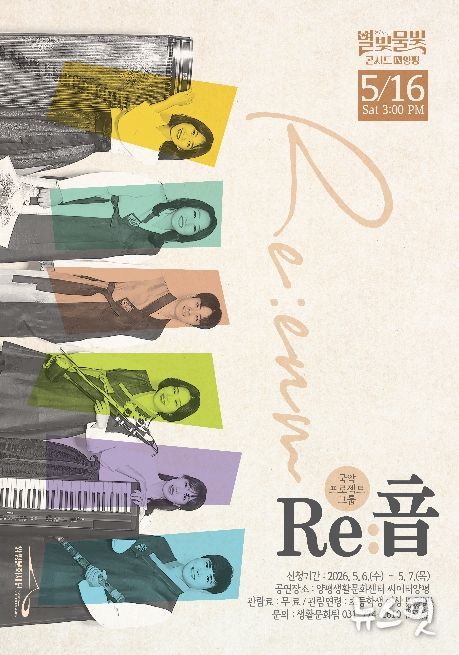(뉴스핏 = 김수진 기자) 양평문화재단은 오는 5월 16일 오후 3시, 양평문화재단 2층 씨어터양평에서 ‘별빛물빛 콘서트 in 양평’ 5월 정기공연으로 국악 프로젝트 그룹 Re:音(리음)의 공연 ‘국악의 빛으로 물든 디즈니’를 선보인다.