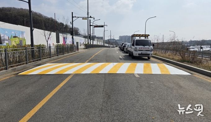 (뉴스핏 = 김수진 기자) 오산시는 가수초등학교 통학로 안전 확보를 위해 인근 우미린 레이크시티 아파트 공사장 진출입로 주변에 과속방지턱 4개소를 신설했다고 밝혔다.
