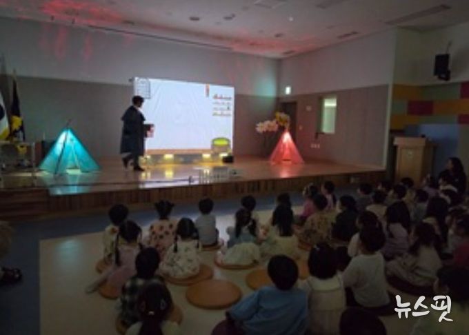 안전교육 주간 첫날인 13일에는 강당에서 ‘안전 마법사 엔마’ 안전교육극을 관람하며 생활 속 안전수칙을 자연스럽게 익히는 시간을 가졌다. 유아들은 흥미로운 공연을 통해 위험 상황에서의 올바른 행동 방법을 이해했다.