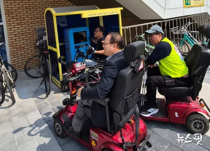 (뉴스핏 = 김수진 기자) 경기도의회 보건복지위원회 박재용 의원(더불어민주당, 비례)은 지난 17일 양주시 옥정호수공원에서 교통약자를 위한 전동스쿠터 급속충전기 운영 실태를 점검하고, 이용 편의 개선 필요성을 확인했다.