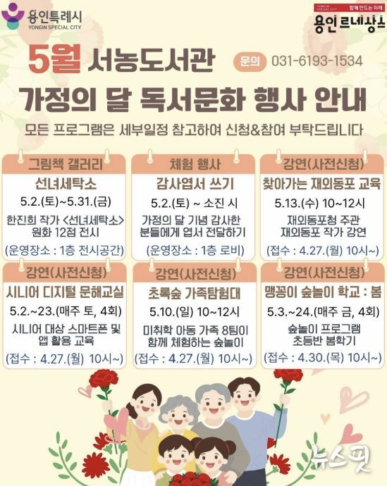 (뉴스핏 = 김수진 기자) 용인특례시 서농도서관은 오는 5월 가정의 달을 맞아 다양한 세대를 아우르는 프로그램으로 이뤄진 ‘2026년 5월 독서문화행사’를 마련했다고 21일 밝혔다.