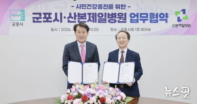 (뉴스핏 = 김수진 기자) 군포시는 20일 시청 1층 회의실에서 산본제일병원과 ‘시민 건강증진 및 의료서비스 질 향상을 위한 업무협약(MOU)’을 체결했다.