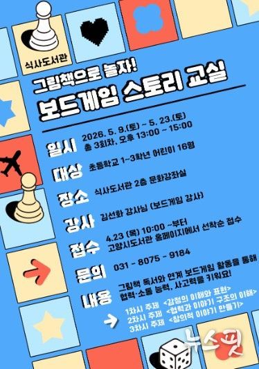 (뉴스핏 = 김수진 기자) 고양특례시 식사도서관이 오는 5월 9일부터 공공도서관 독서문화 프로그램 ‘그림책으로 놀자! 보드게임 스토리 교실’을 운영한다.