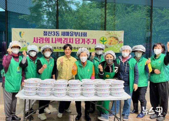 (뉴스핏 = 김호 기자) 광명시 철산3동 새마을부녀회는 21일 철산3동 행정복지센터 앞마당에서 ‘사랑의 열무김치 나눔 행사’를 열었다.
