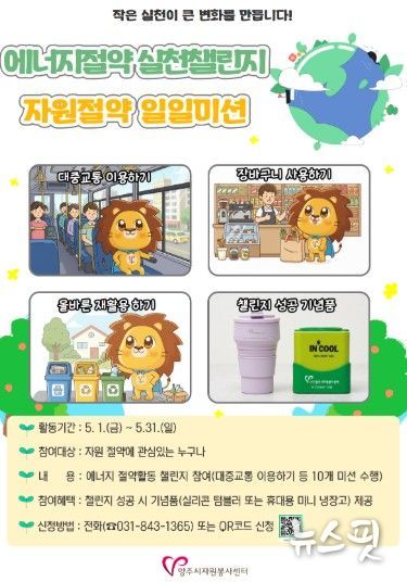 (뉴스핏 = 김호 기자) 양주시자원봉사센터는 자원안보위기 극복과 에너지 절약 문화 확산을 위해 에너지 절약 실천 챌린지 ‘자원절약 일일미션’을 운영한다고 밝혔다.