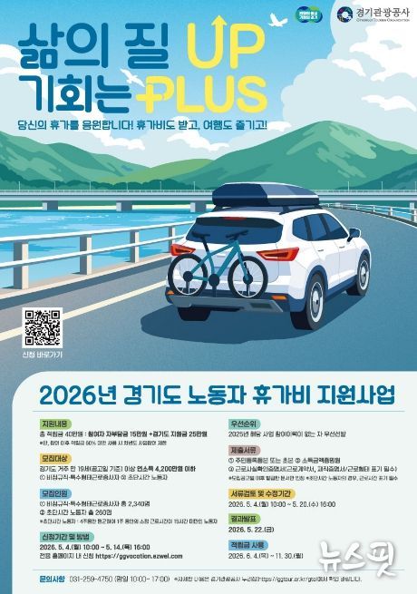 (뉴스핏 = 김수진 기자) 경기도가 경제적 부담으로 휴식을 포기했던 비정규직과 특수형태근로종사자에게 휴가비를 지원하는 ‘취약노동자 휴가비 지원사업’ 참여자를 5월 4일부터 14일까지 모집한다.