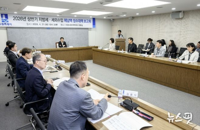 (뉴스핏 = 김호 기자) 수원특례시는 21일 시청 상황실에서 김현수 제1부시장 주재로 상반기 징수대책보고회를 열고, 징수 부서별 징수목표액과 징수 상황을 점검했다.