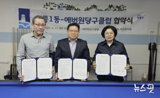협약식은 에버원당구클럽에서 진행됐으며, 영통1동 행정복지센터, 영통1동 주민자치회, 에버원당구클럽 관계자 등 총 5명이 참석한 가운데 협약서 서명 및 교환, 기념촬영 순으로 진행됐다.