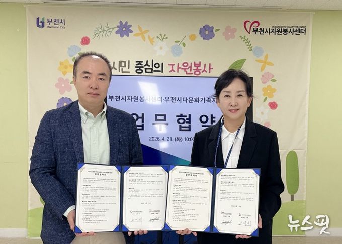 (뉴스핏 = 김호 기자) 부천시다문화가족지원센터는 4월 21일 부천시자원봉사센터와 자원봉사 활성화 및 다문화가족의 지역사회 참여 확대를 위한 업무협약(MOU)을 체결했다고 밝혔다.