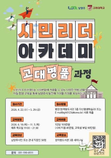 (뉴스핏 = 김수진 기자) 남양주시는 시민의 자치 역량 강화를 위해 ‘남양주시 시민리더 아카데미’ 제20기 수강생을 모집한다고 22일 밝혔다.