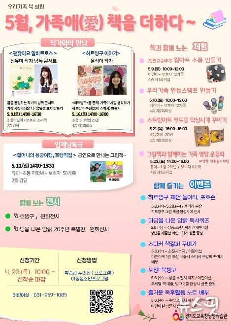 (뉴스핏 = 김수진 기자) 경기도교육청평생학습관이 가족 사랑 실천과 가족 간 유대감 증진을 위해 가족 독서체험 행사인 䃵월, 가족애(愛) 책을 더하다’를 운영한다.