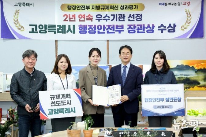 (뉴스핏 = 김호 기자) 고양특례시는 지난 22일 행정안전부 주관 ‘2025년 지방규제혁신 성과평가’에서 행정안전부 장관상을 수상하며 규제혁신 분야에서의 경쟁력을 다시 한번 입증했다. 또 이번 평가에 따른 재정 인센티브로 지난해 말 특별교부세 1억 원을 확보했다.