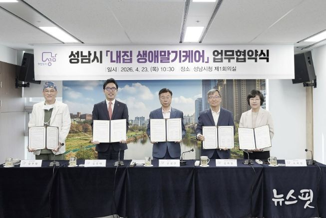 시는 4월 23일 오전 10시 30분 시청 4층 제1회의실에서 성남시의사회, 성남시의료원, 새한베스트의원, 집으로의원, 홈닥터의원과 ‘내집 생애말기케어 사업 추진을 위한 업무협약’을 체결했다.