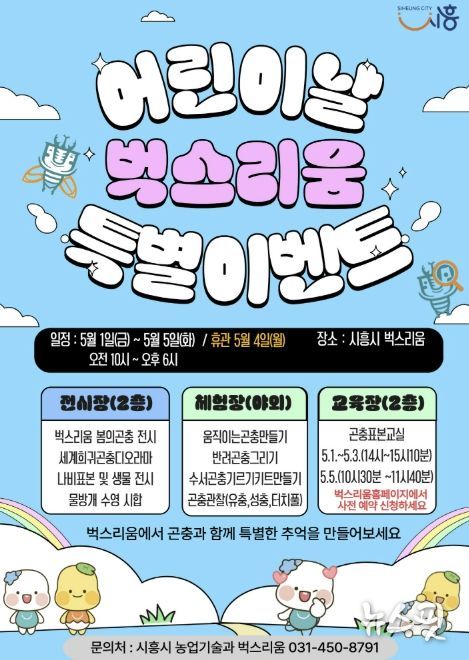 (뉴스핏 = 김수진 기자) 시흥시 곤충체험전시관 ‘벅스리움’은 어린이날을 맞아 아동과 가족이 함께 즐길 수 있는 ‘특별 프로그램’을 오는 5월 1일부터 5일까지 운영한다.