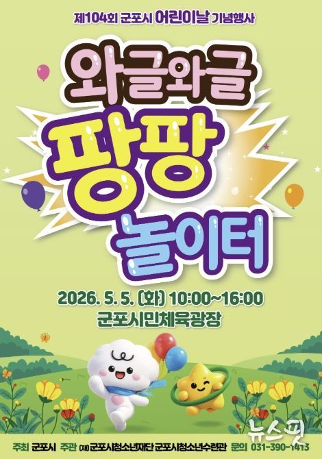 (뉴스핏 = 김수진 기자) 군포시는 제104회 어린이날을 맞아 오는 5월 5일 오전 10시부터 오후 4시까지 군포시민체육광장에서 ‘와글와글 팡팡 놀이터’를 주제로 어린이날 기념행사를 개최한다.