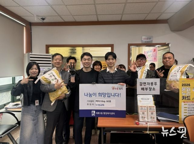 (뉴스핏 = 김호 기자) 수원시 권선구 소재 수성교회는 세류3동행정복지센터에 쌀 50포를 기부하며, 지역 내 어려운 이웃을 위한 따뜻한 나눔을 실천했다.