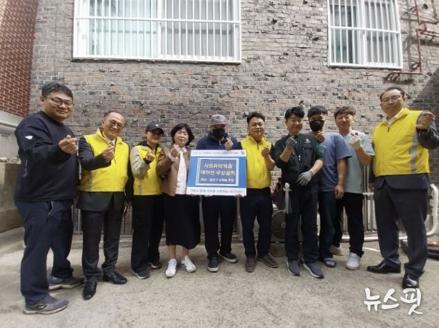 (뉴스핏 = 김호 기자) 지난 23일 수원시 권선구 호매실동 지역사회보장협의체는 업무협약을 맺은 수원남부로타리 클럽과 주거환경개선 특화사업의 일환으로, 반지하 빌라에 거주하는 취약계층 어르신 댁에 에어컨을 설치했다.