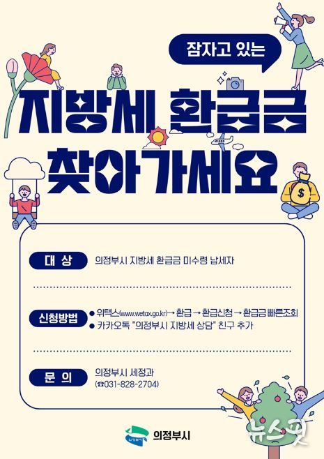 (뉴스핏 = 김호 기자) 의정부시는 납세자가 아직 찾아가지 않은 지방세 환급금을 돌려주기 위해 5월 말까지 ‘지방세 환급금 일제정리 기간’을 운영한다.