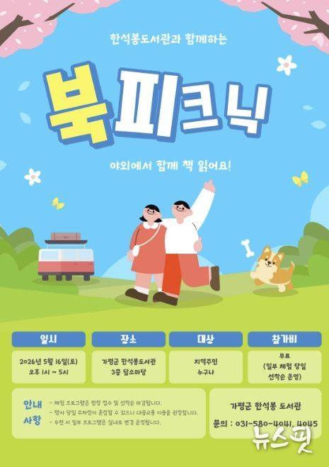 (뉴스핏 = 김수진 기자) 가평군은 5월 가정의 달을 맞아 오는 16일 한석봉도서관 3층 담소마당에서 ‘가족과 함께하는 북 피크닉’ 행사를 개최한다고 밝혔다.