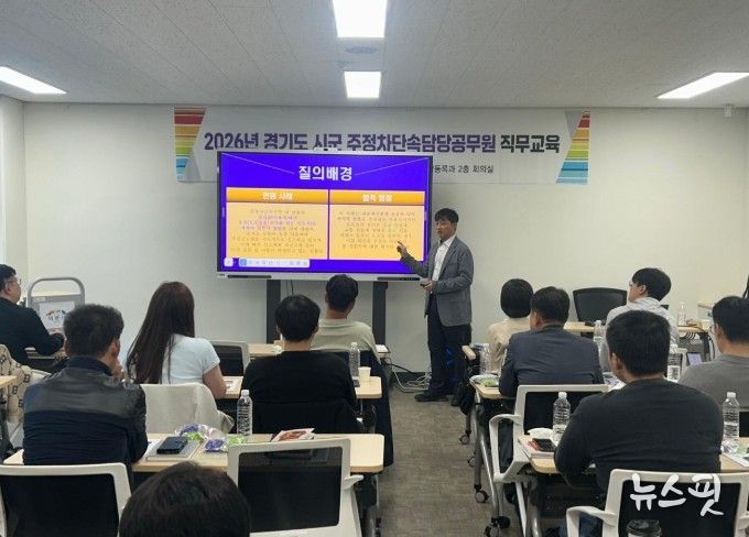 (뉴스핏 = 김호 기자) 이천시는 4월 23일, 24일 양일간 차량등록과 2층 회의실에서 경기도 11개 시군 주정차단속담당공무원 50명을 대상으로 도로교통법 및 주정차단속실무에 관한 직무교육을 실시했다고 밝혔다.