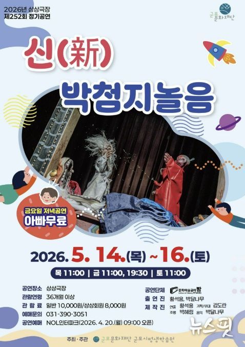 (뉴스핏 = 김수진 기자) 군포문화재단 군포시평생학습원 상상극장은 5월 정기공연으로 전통 인형극을 현대적으로 풀어낸 '新박첨지놀음'을 무대에 올린다. 공연은 5월 14일부터 16일까지 상상극장에서 만날 수 있다.
