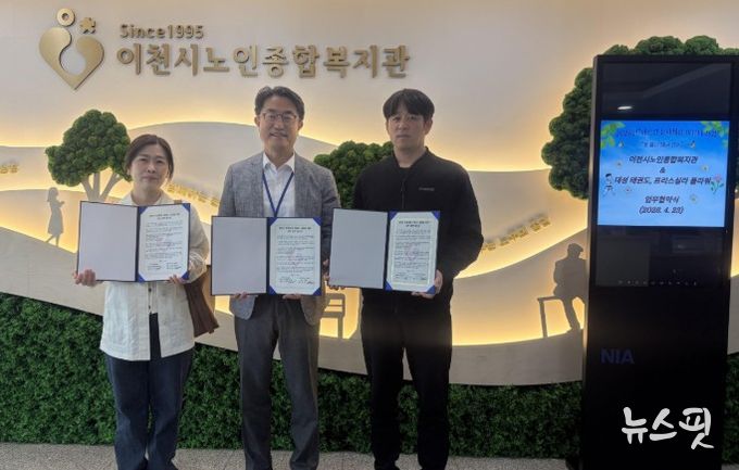 (뉴스핏 = 김호 기자) 이천시는 지난 4월 23일, 이천시 노인종합복지관에서 대성태권도과와 프리스실라 플라워와 함께 지역사회 어르신들의 복지 증진과 통합적 지원 체계 구축을 위한 ‘어르신 문화체육 이음터사업’ 업무협약(MOU)을 체결했다고 밝혔다.