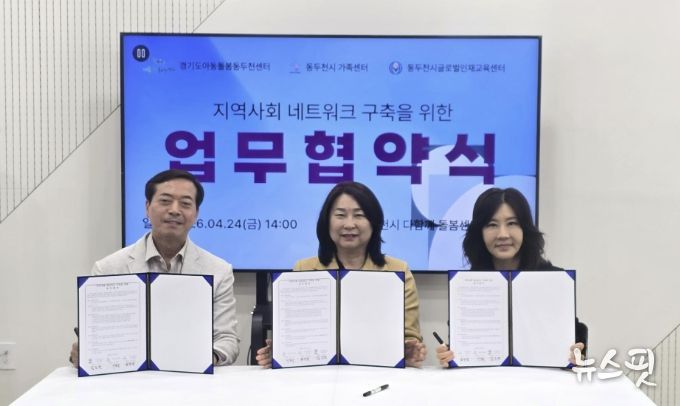 (뉴스핏 = 김호 기자) 동두천시글로벌인재교육센터는 지난 24일 동두천시가족센터, 동두천시다함께돌봄센터1호점(경기도아동돌봄동두천센터)과 함께 지역사회 네트워크 구축을 위한 3자 간 업무협약(MOU)을 체결했다고 밝혔다.