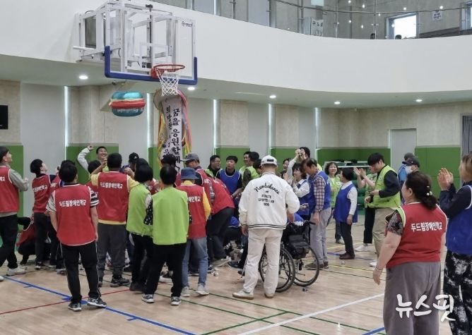 (뉴스핏 = 김수진 기자) 동두천시 학교 형태의 장애인 평생교육시설인 두드림장애인학교가 지난 24일 동두천반다비체육센터에서 ‘명랑운동회’를 개최했다.